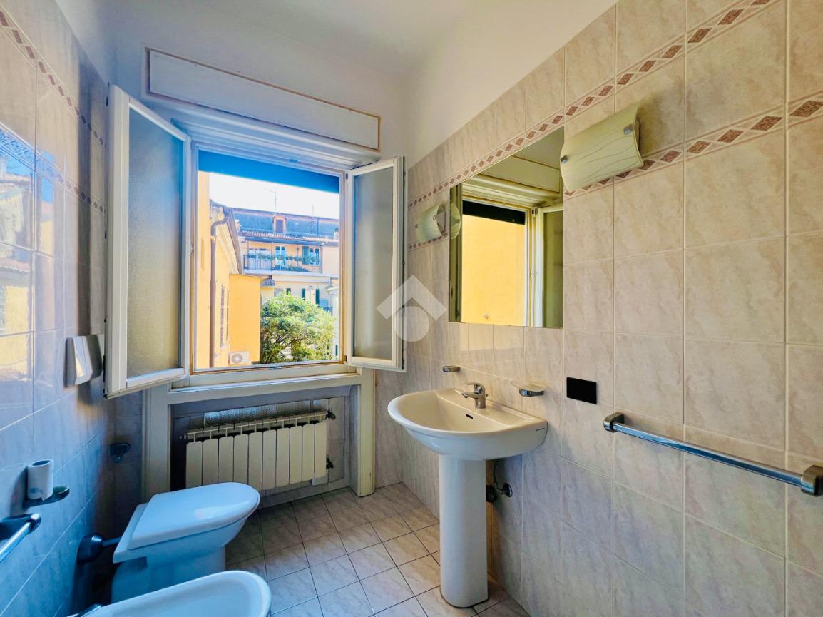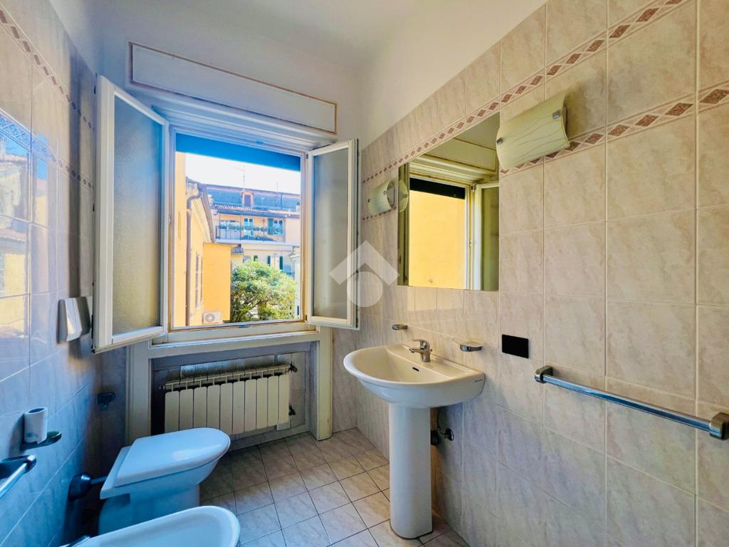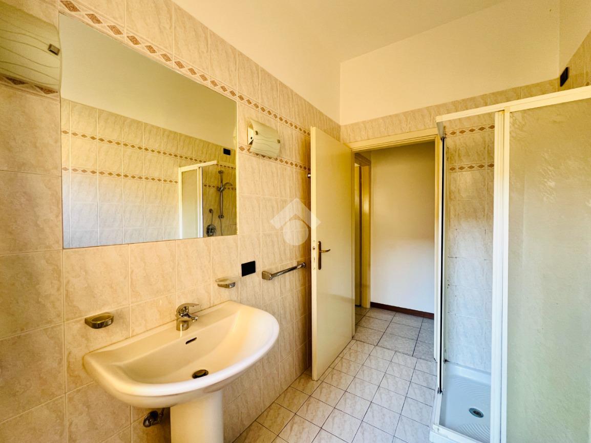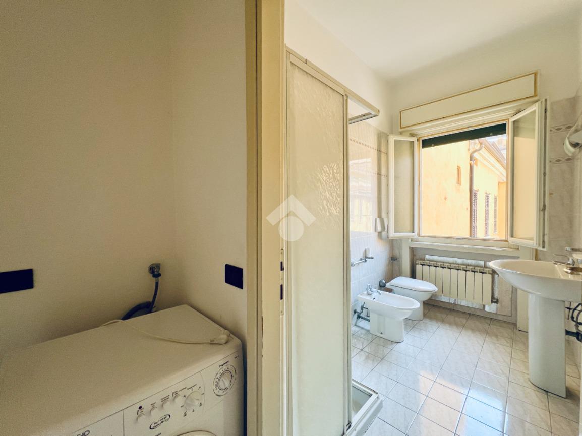 Il bagno finestrato è dotato di box docia e un antibagno con comoda lavanderia.